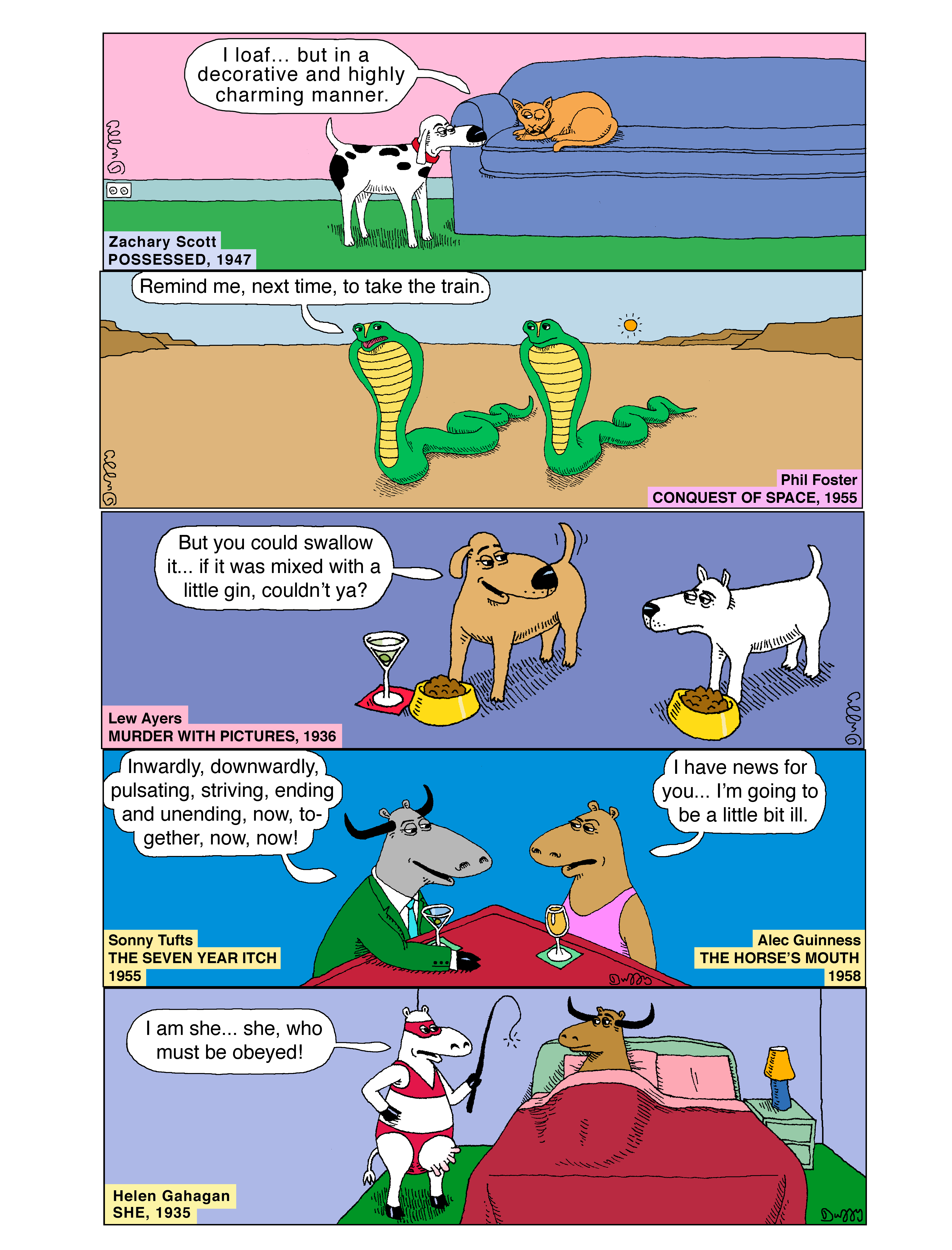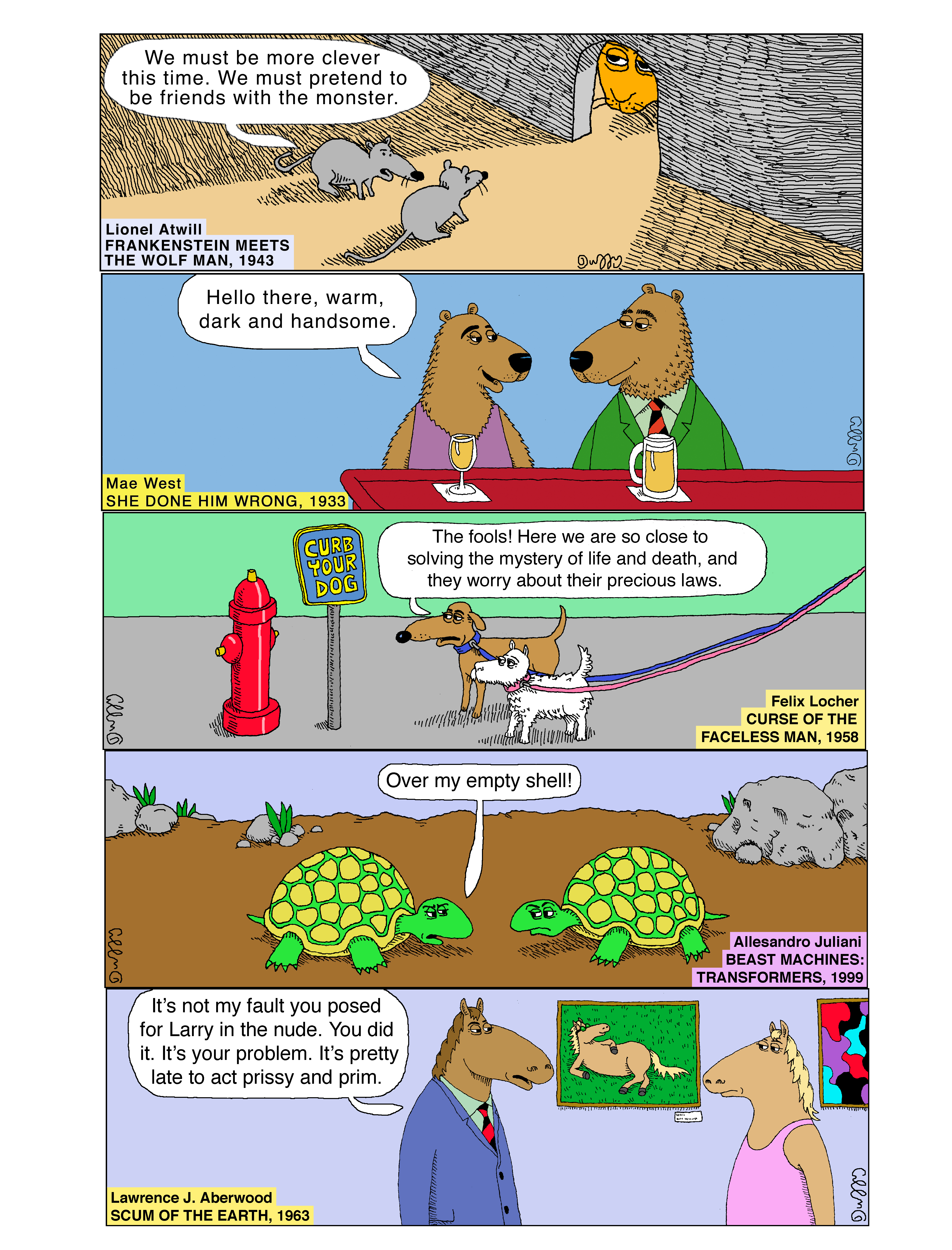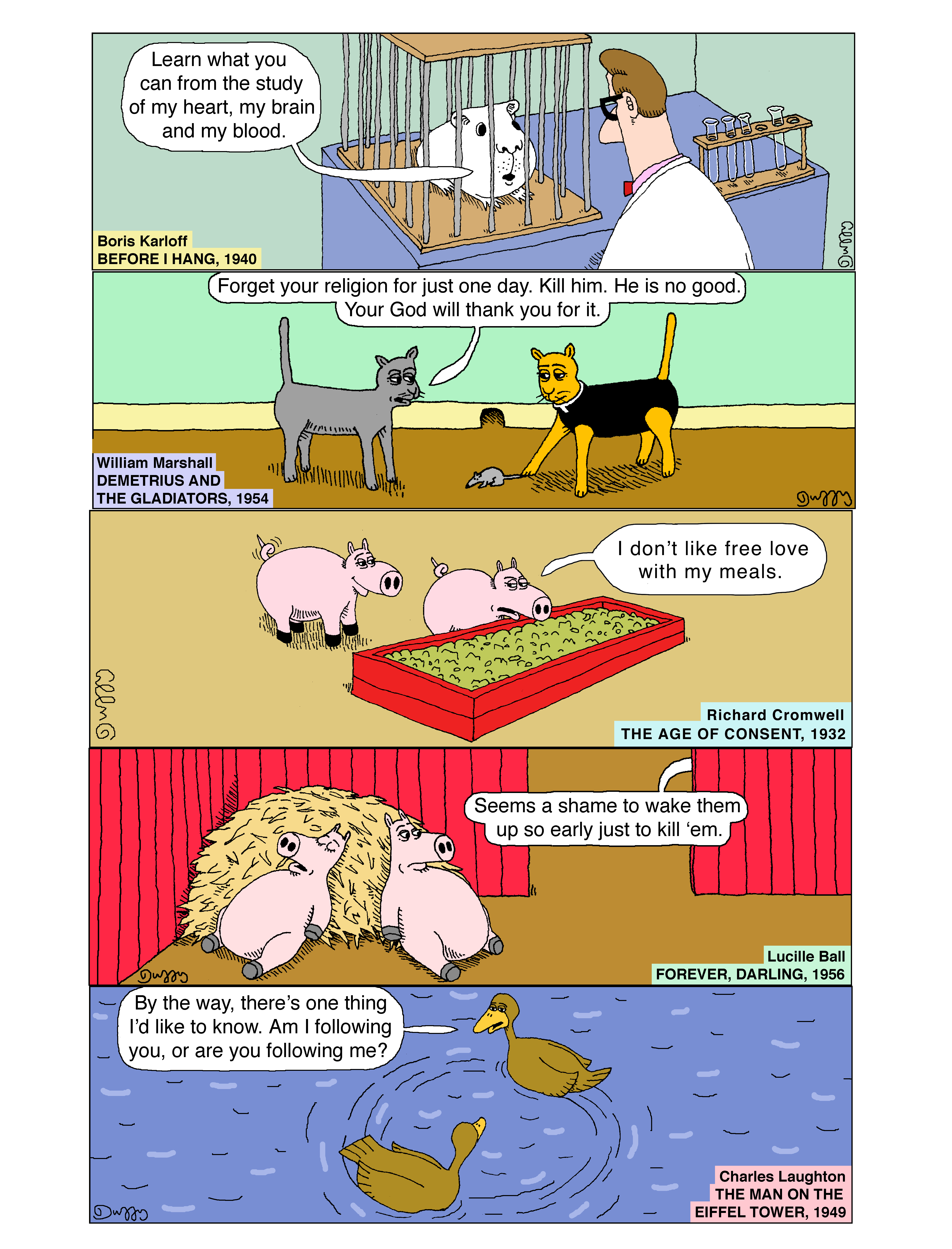 CREATURE FEATURESIn 2011 I worked up a comic strip proposal called CREATURE FEATURES, which failed to get a syndication deal. In a nutshell, the premise was animals delivering authentic quotes from old movies. J.C. DuffyMay 30, 202541Share