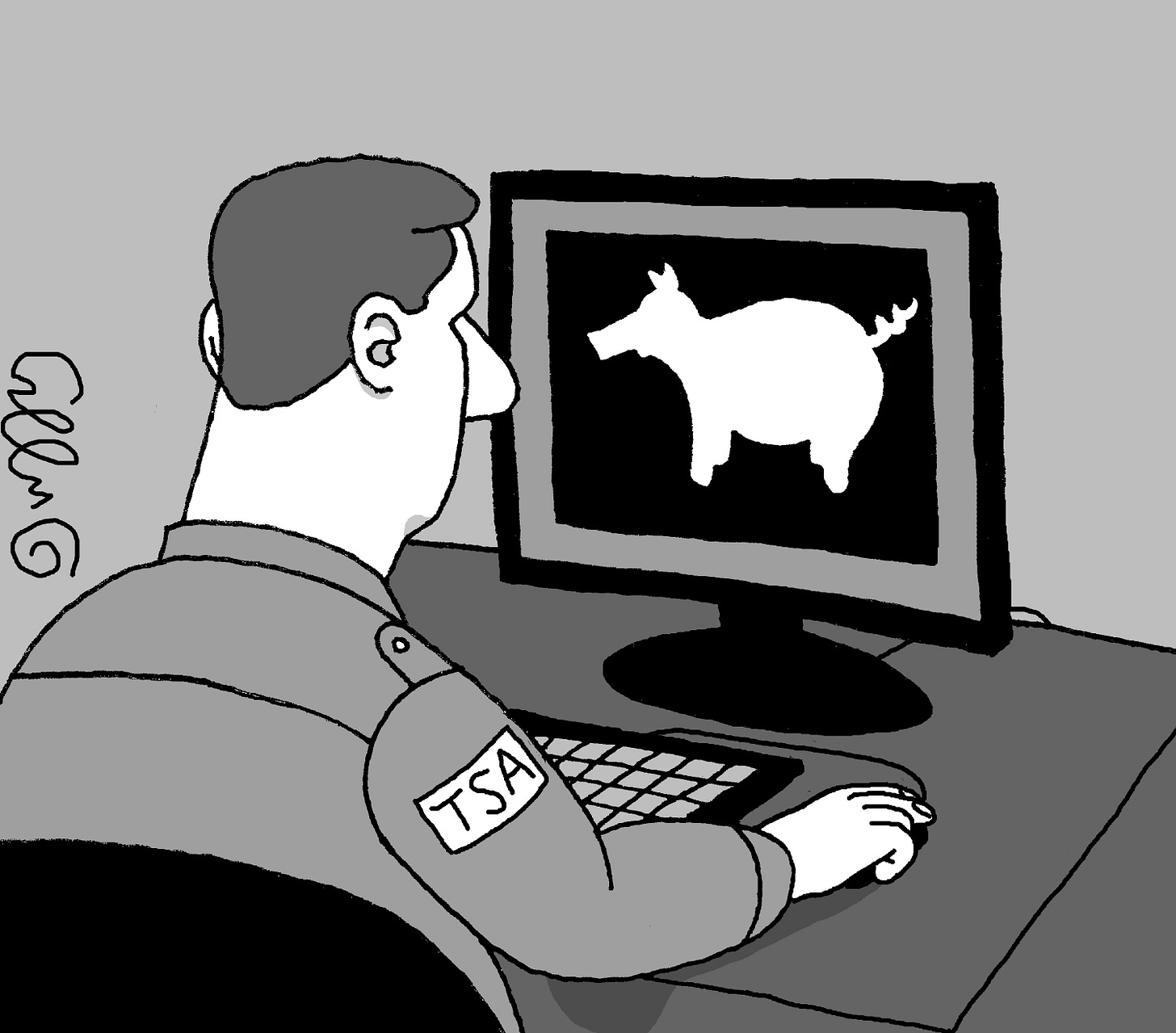 These days, anyone with an emotional disability can fly with an emotional support animal (ESA). This is a companion animal that provides some benefit for a person disabled by a mental health condition or emotional disorder. These beasts are typically dogs, but they can also be cats, parrots, pot-bellied pigs, or even a miniature horse. Passengers must be certified by a psychologist, therapist or psychiatrist. Or, in a pinch, a bartender or nail-care professional. The animals are in the cabin with the owner, outside of a carrier. They must fit on your lap, at your feet, or under the seat, and cannot block the aisle. And they can’t have a seat of their own, not even if they’re in First Class and are as snobby as I.
